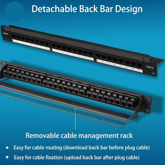 Cat 6 24 Port Patch Panel, 10G Support with Inline Keystone